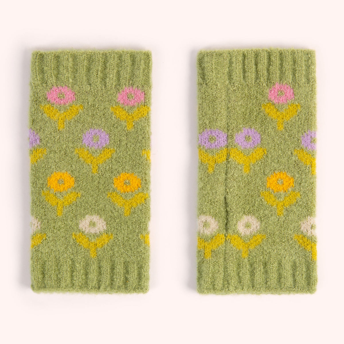 Add a pop of colour to your winter wardrobe with these delightfully feminine Willow Ditsy Flower Wrist Warmers in the seasons trending sage green.