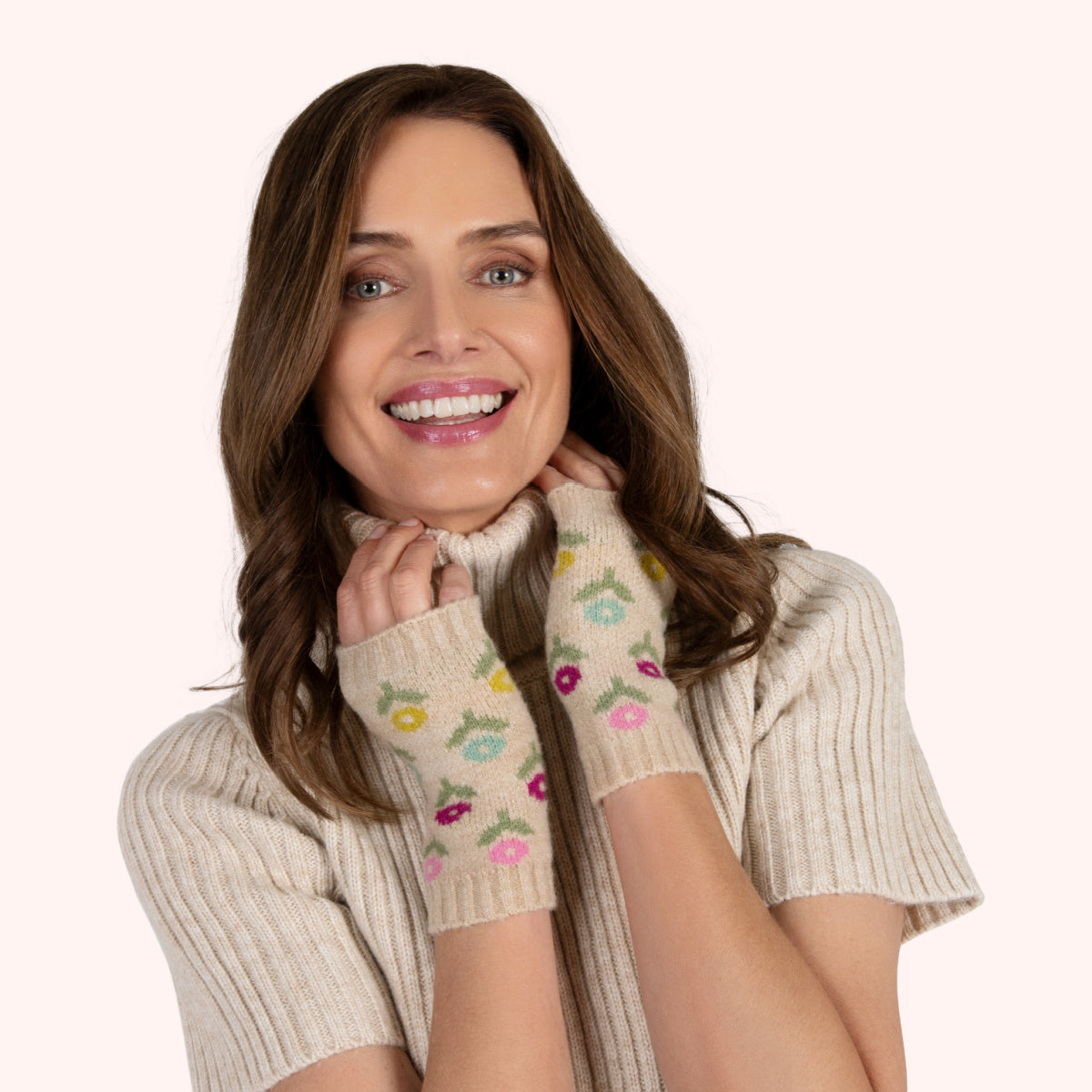 Willow Ditsy Flower Wrist Warmers- in Cream
