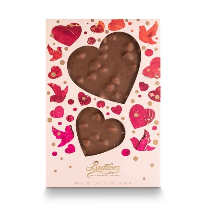 A truly wonderful milk chocolate with whole roasted hazelnuts and butterscotch pieces, presented in a beautiful heart themed box. A lovely gift for Valentine's Day.
